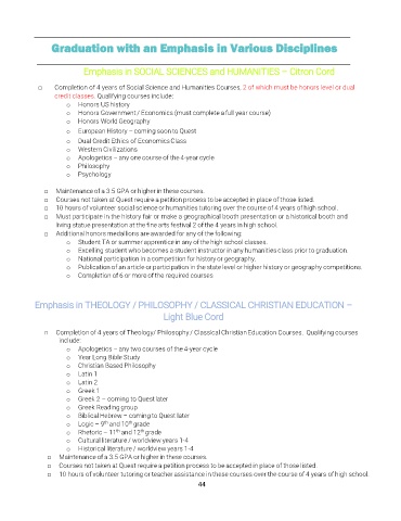□ Completion of 4 years of Social Science and Humanities Courses, 2 of which must be honors level or dual
