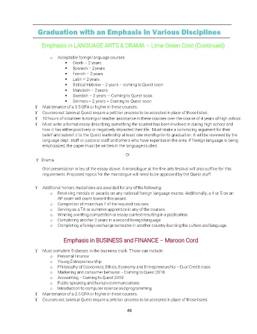 Emphasis in LANGUAGE ARTS & DRAMA – Lime Green Cord (Continued)