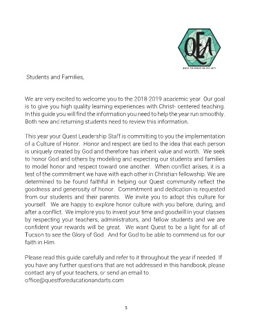to honor God and others by modeling and expecting our students and families