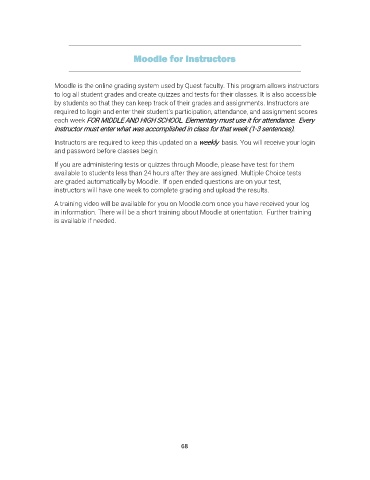 Moodle is the online grading system used by Quest faculty. This program allows instructors