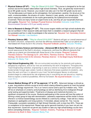 and supplies. Required Text: Apologia Physical Science 2nd edition Instructor: Leigh Elkins