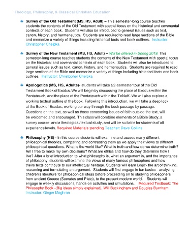 Apologetics (MS, HS, Adults)- students will take a 2-semester tour of the Old