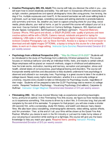 • Creative Photography (MS, HS, Adult) This course will help you discover the artist in you…you