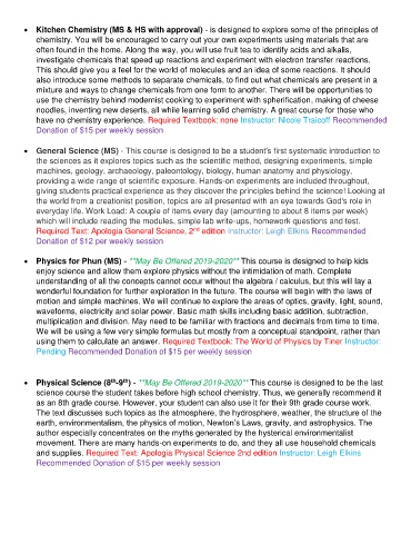 and supplies. Required Text: Apologia Physical Science 2nd edition Instructor: Leigh Elkins