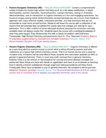 • Honors Inorganic Chemistry (HS) - **May be offered 2019-2020** Covers a comprehensive