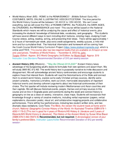 • Ancient History (HS) (Rhetoric) - **May Be Offered 2019-2020** Ancient History takes