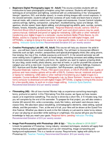 • Image Post-Processing with Photoshop- (9th & Up) - **May be offered in 2019-2020**