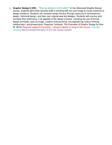• Graphic Design II (HS) - **May be offered in 2019-2020** In the Advanced Graphic Design