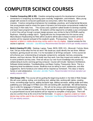 • Creative Computing (MS & HS) - Creative computing supports the development of personal