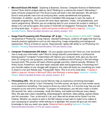 • Image Post-Processing with Photoshop- (9 & Up) - **May be offered in 2019-2020** Unlock