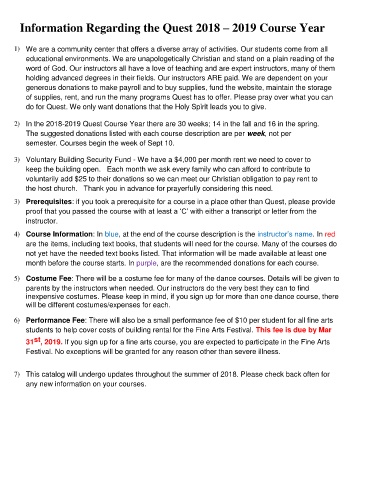 2) In the 2018-2019 Quest Course Year there are 30 weeks; 14 in the fall and 16 in the spring.