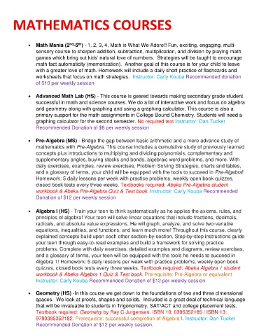 • Advanced Math Lab (HS) - This course is geared towards making secondary grade student
