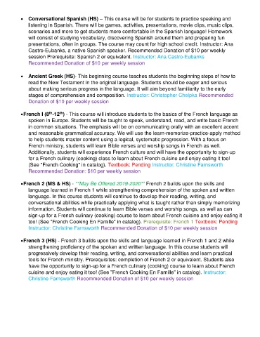 • French 2 (MS & HS) - **May Be Offered 2019-2020** French 2 builds upon the skills and