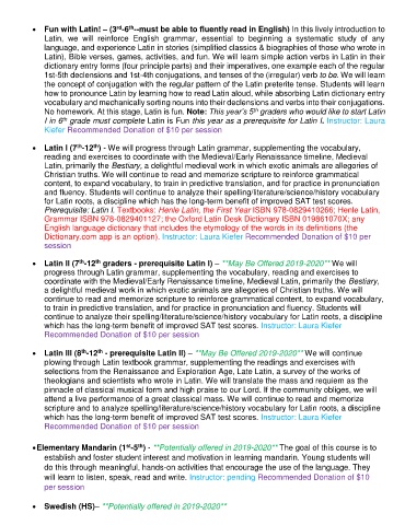 • Fun with Latin! – (3 -6 --must be able to fluently read in English) In this lively introduction to
