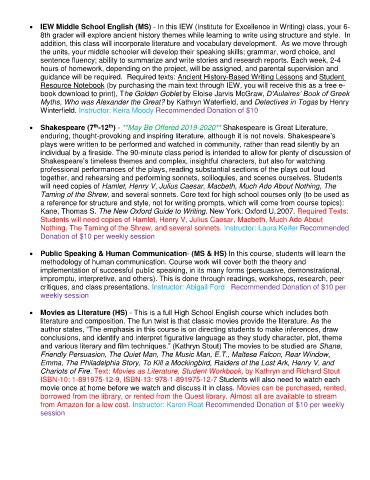 • Shakespeare (7 -12 ) - **May Be Offered 2019-2020** Shakespeare is Great Literature,