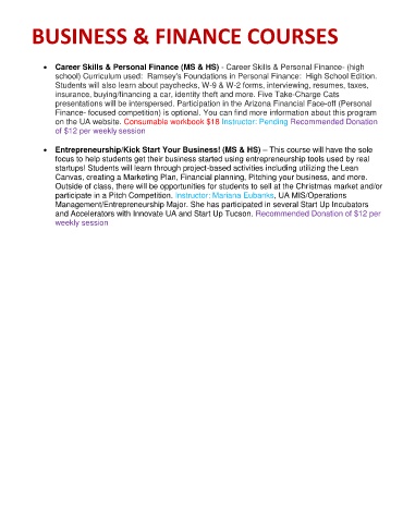 on the UA website. Consumable workbook $18 Instructor: Pending Recommended Donation