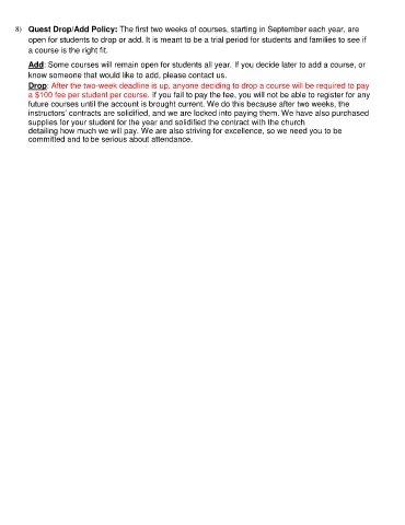 8) Quest Drop/Add Policy: The first two weeks of courses, starting in September each year, are