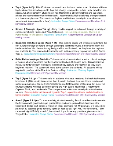 • Tap 1 (Ages 6-10) - This 45 minute course will be a fun introduction to tap. Students will learn