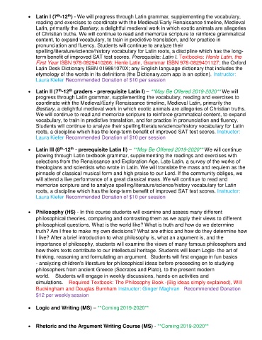 • Latin III (8 -12 - prerequisite Latin II) – **May Be Offered 2019-2020** We will continue