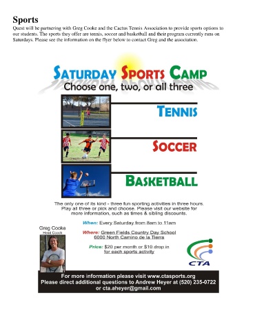 Quest will be partnering with Greg Cooke and the Cactus Tennis Association to provide sports options to
