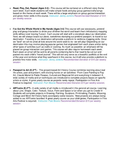 Arts Festival is required. Instructor: Pam Boone Recommended Donation $10 per weekly
