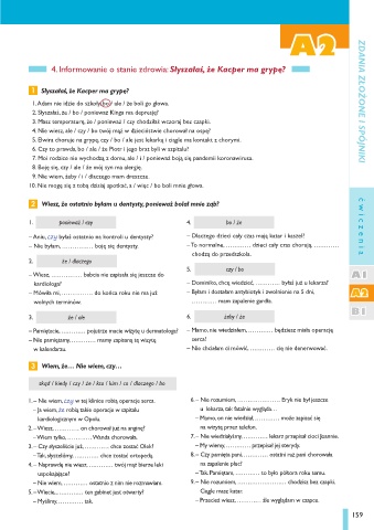 3. Masz temperaturę, że / ponieważ / czy chodziłaś wczoraj bez czapki.