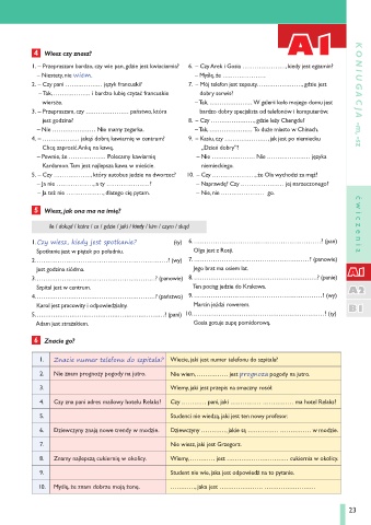 1. – Przepraszam bardzo, czy wie pan, gdzie jest kwiaciarnia? 6. – Czy Arek i Gosia …………………, kiedy jest egzamin?
