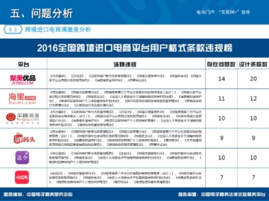 五、问题分析 电商门户 “互联网+”智库 5.2 跨境进口电商满意度分析 《2016年中国跨境进口电商发展报告》 《2016-2017年度中国跨境进口电商发展报告》