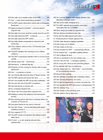 276 Han calls out to median voters of the DPP ..............160 305 Chi-mai over disaster relief efforts, slanders Han