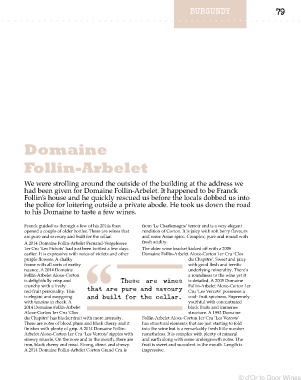 du Chapitre’ has blacker fruit with more intensity. Follin-Arbelet Aloxe-Corton 1er Cru ‘Les Vercots’