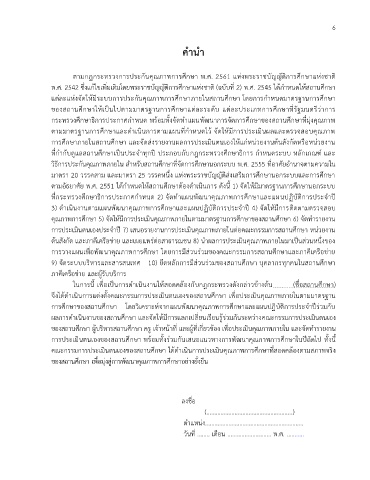 คุณภาพการศึกษา 5) จัดให้มีการประเมินคุณภาพภายในตามมาตรฐานการศึกษาของสถานศึกษา 6) จัดท ารายงาน