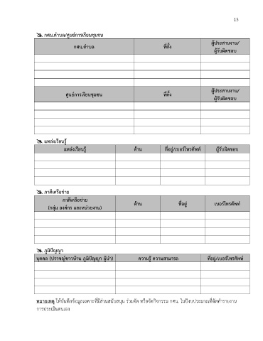 บุคคล (ปราชญ์ชาวบ้าน ภูมิปัญญา ผู้น า)         ความรู้ ความสามารถ               ที่อยู่/เบอร์โทรศัพท์