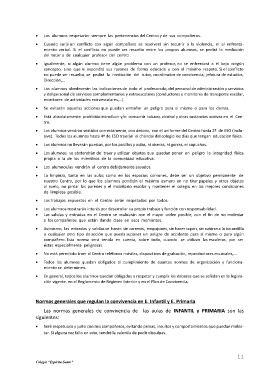 • Los alumnos se abstendrán de traer y utilizar objetos que puedan poner en peligro la integridad física
