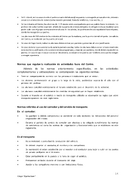 • Durante el trayecto en el autobús o medio de transporte utilizado se observarán las reglas que sobre