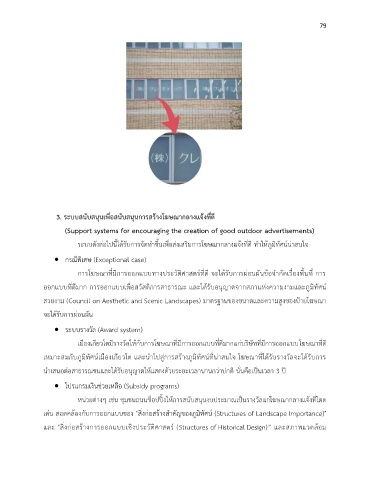 เหมาะสมกับภูมิทัศน์เมืองเกียวโต และน าไปสู่การสร้างภูมิทัศน์ที่น่าสนใจ โฆษณาที่ได้รับรางวัลจะได้รับการ