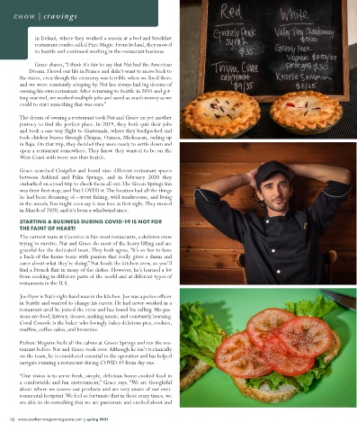 cares about what they’re doing.” Nat heads the kitchen crew, so you’ll