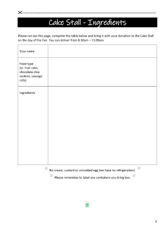 Please cut out this page, complete the table below and bring it with your donation to the Cake Stall