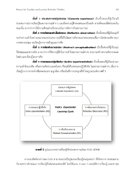 ขั้นที่ 4 การทดลองปฏิบัติจริง (Active experimentation) เป็นขั้นตอนที่ผู้เรียนน าเอา