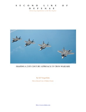 SECOND LINE OF DEFENSE Delivering Capabilities to the War Fighter SHAPING A 21ST CENTURY APPROACH TO TRON WARFARE By Ed Timperlake Editor, Second Line of Defense Forum h t t p : / / w w w. s l d i n f o . c o m
