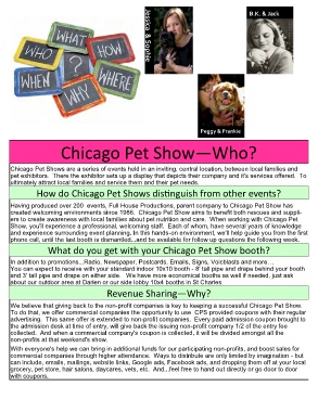 created welcoming environments since 1986. Chicago Pet Show aims to benefit both rescues and suppli-