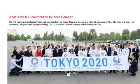 We will make a substantial financial contribution to these Games, as we do with all editions of the Olympic Games. For reference, we provided approximately USD 1.5 billion to the success of the Games in Rio.