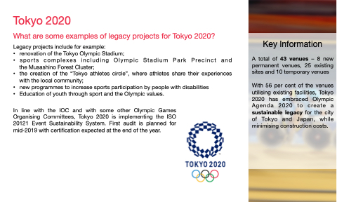 With 56 per cent of the venues utilising existing facilities, Tokyo