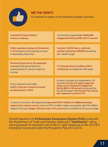 having passed 16 measures out of the 21 valid measures in the 2016 DTI
