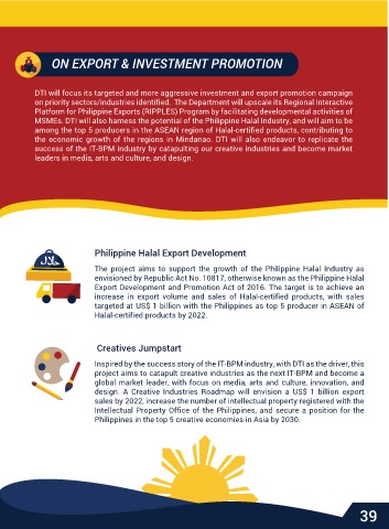 MSMEs. DTI will also harness the potential of the Philippine Halal Industry, and will aim to be