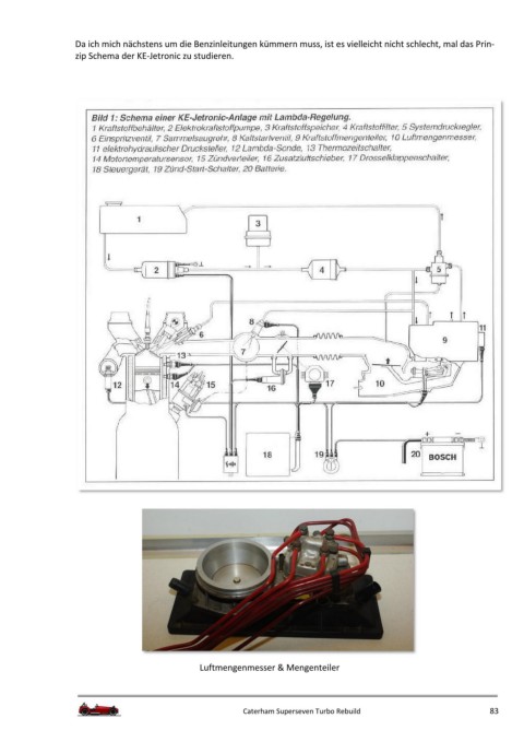 Da ich mich nächstens um die Benzinleitungen kümmern muss, ist es vielleicht nicht schlecht, mal das Prin- zip Schema der KE-Jetronic zu studieren. Luftmengenmesser & Mengenteiler Caterham Superseven Turbo Rebuild 83