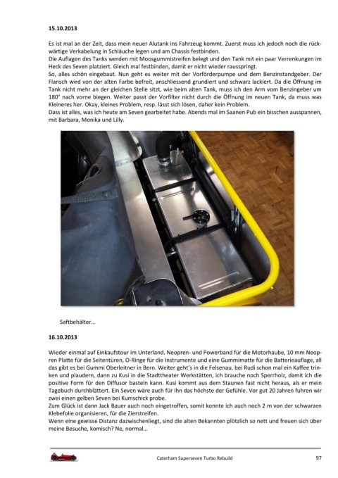 So, alles schön eingebaut. Nun geht es weiter mit der Vorförderpumpe und dem Benzinstandgeber. Der