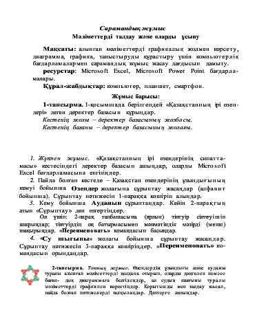 ресурстар: Microsoft Excel, Microsoft Power Point бағдарла-