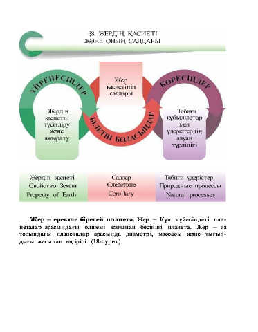 Жер – ерекше бірегей планета. Жер – Күн жүйесіндегі пла- неталар арасындағы өлшемі жағынан бесінші планета. Жер – өз тобындағы планеталар арасында диаметрі, массасы және тығыз- дығы жағынан ең ірісі (18-сурет).
