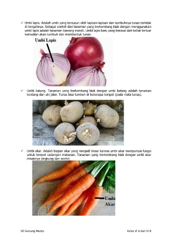 ✓ Umbi lapis. Adalah umbi yang tersusun oleh lapisan-lapisan dan tumbuhnya tunas terletak