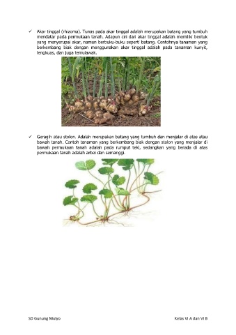 yang menyerupai akar, namun berbuku-buku seperti batang. Contohnya tanaman yang